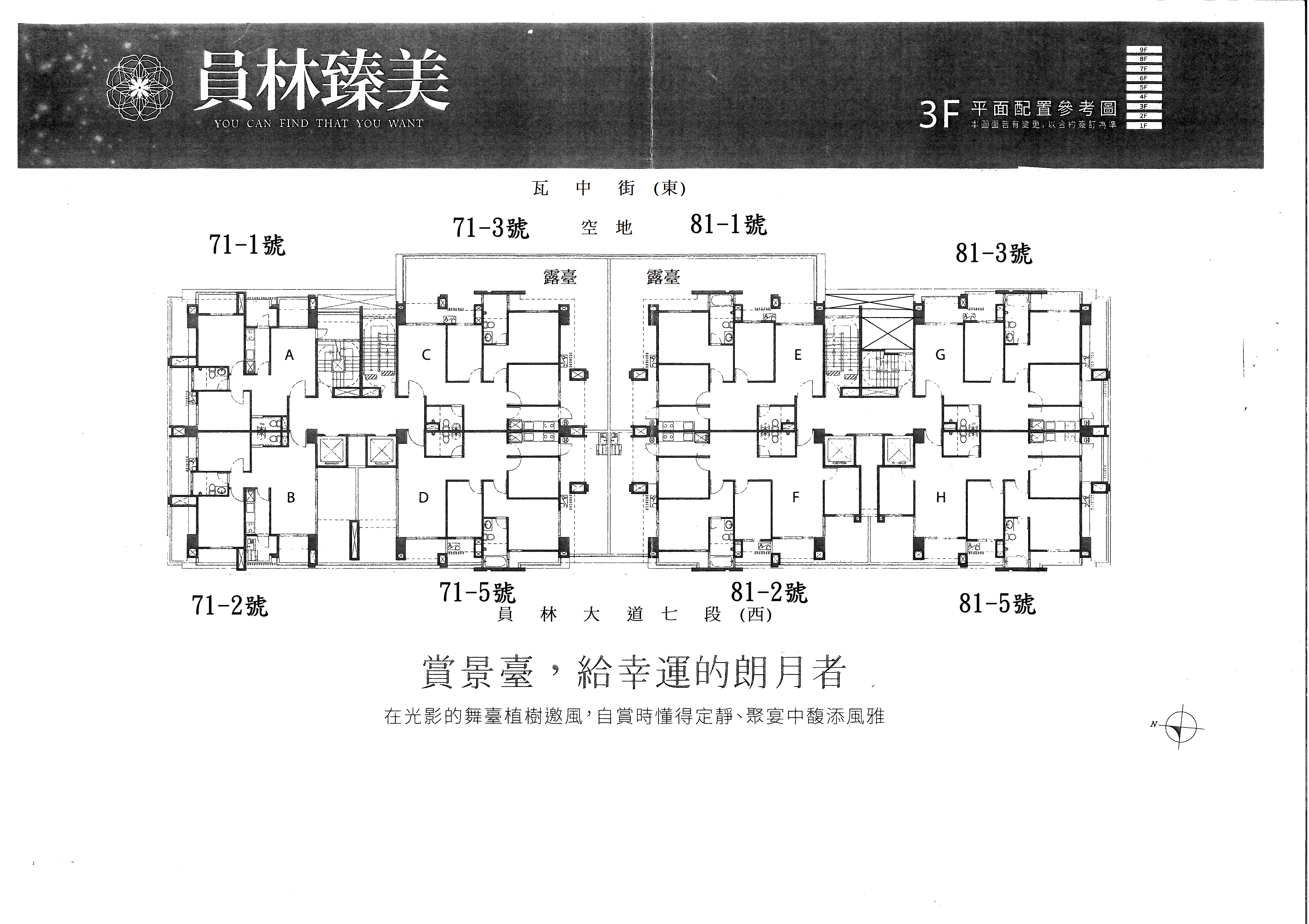 建築規劃 :地下兩層~地上九層 兩棟 兩房 、 三房、四房