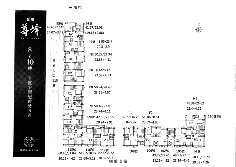 建案規劃:八棟 、住197戶 、店8戶 共207戶